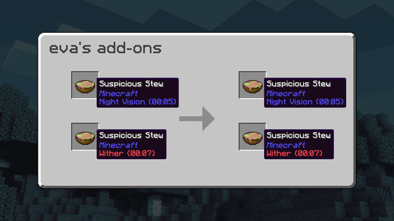 In the main pack, stews with custom effects will fall back to the ordinary suspicious stew texture, with no amogus. In either "only imposter/crewmate stews" pack, all suspicious stews will be changed, including those with custom effects. You can place the Only Imposter Stews or Only Crewmate Stews below the main pack (but not both!) to choose which variant will be used as a fallback texture.